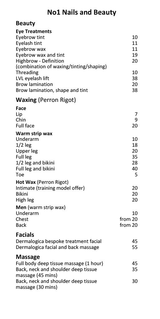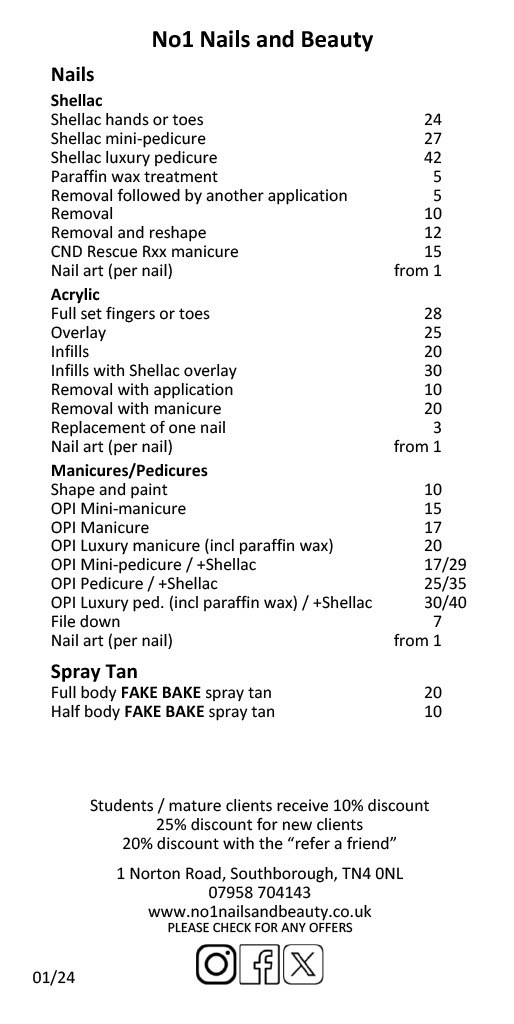 With that in mind I look forward to welcoming you to No 1 Nails and Beauty. Always remember to check for my latest offers on Instagram.